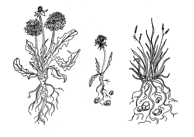 Дълго време те мълчаха. Тогава малкото глухарче попитало големия си съсед: „Какво правиш в момента?“ „Тренирам корена си“. „Аз също го правя. Но от няколко дни не съм постигнал никакъв напредък. Коренът ми се е ударил в камък.“ „Вижте как го прави канапето. Позволи на корена си да расте около камъка. Ако е необходимо, образувай няколко корена“, каза голямото глухарче. „Не ми е позволено да правя това“, каза малкото. „Коренът си е корен.“ И си остана малко.